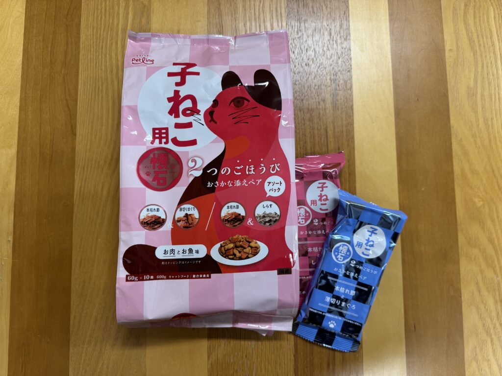 中は個包装になっていて、とても餌をあげるにはあげやすいです。(決して回し者ではございません。)