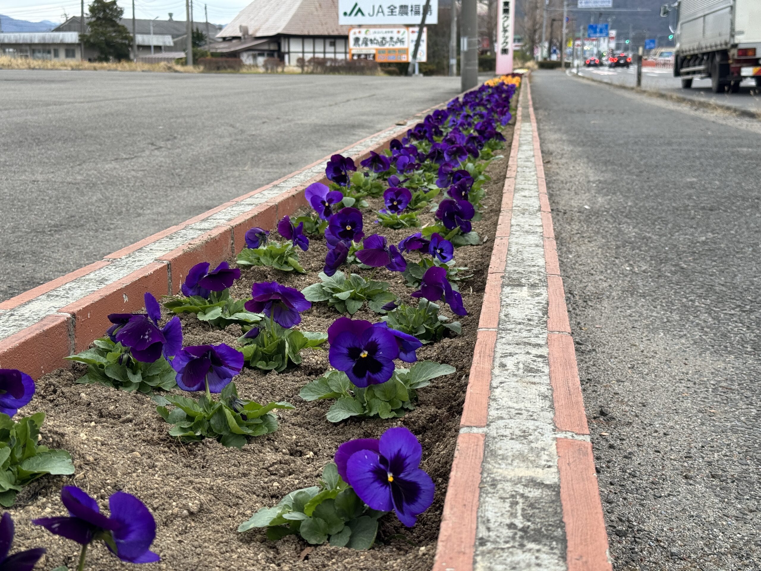 さてさてさて、本年もやってまいりました。花植えの季節。今年は本社には約500個のパンジーの苗を、郡山支店には約50個の苗を、原町支店には約100個植えました。